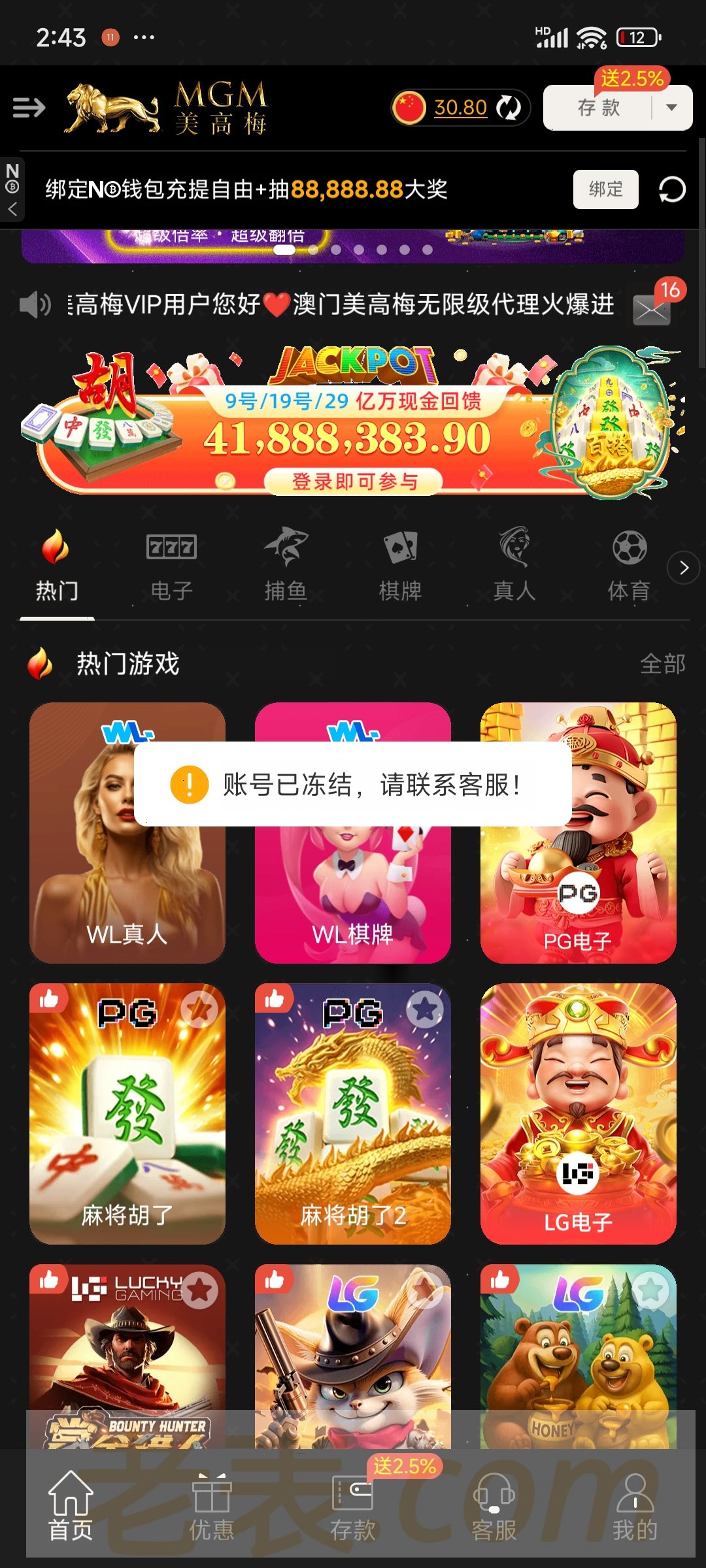 短信特邀送了彩金,提50块直接黑。隔壁论坛也曝光了。也是我发的。大家避雷。