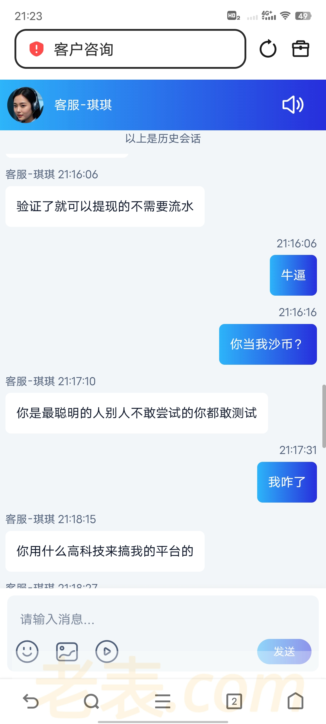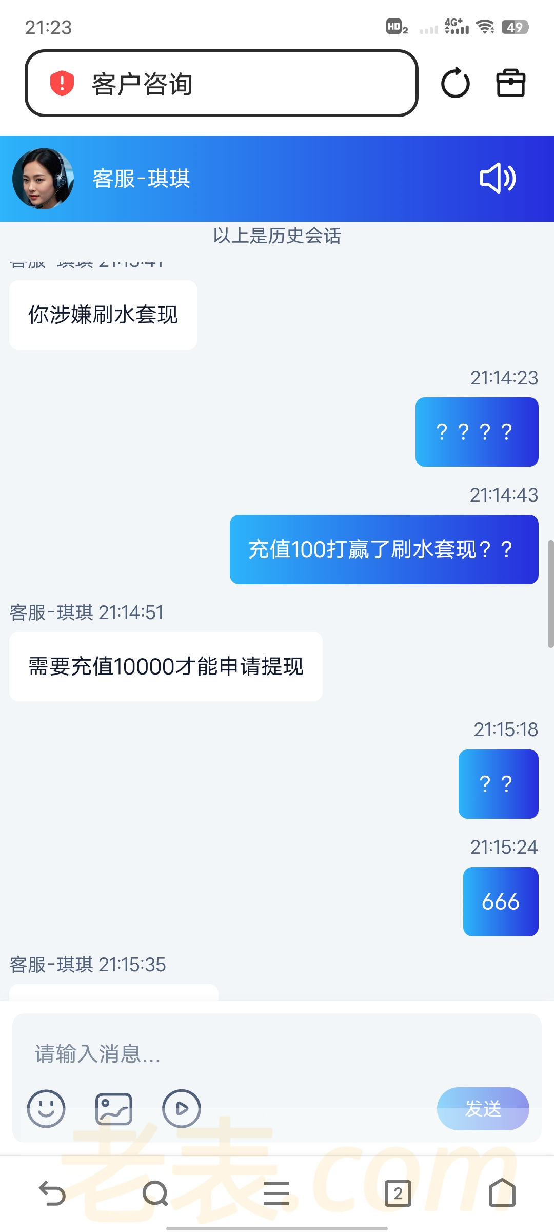 充100打到600提款被退回 然后联系客服说充值10000才能申请提现 还说我用高科技搞他平台