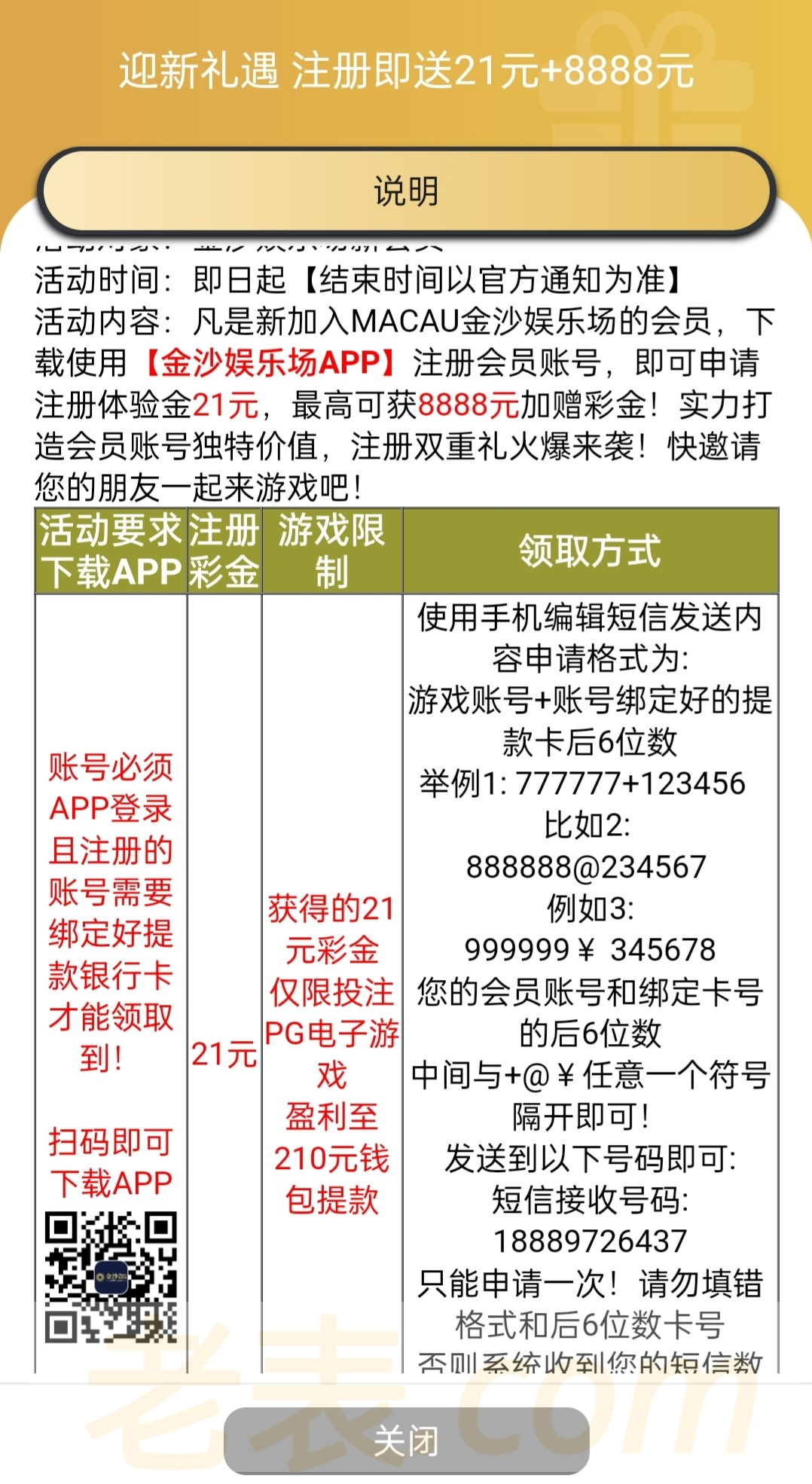 新用户下载app注册完善信息,发送短信领取21彩金,具体自测!