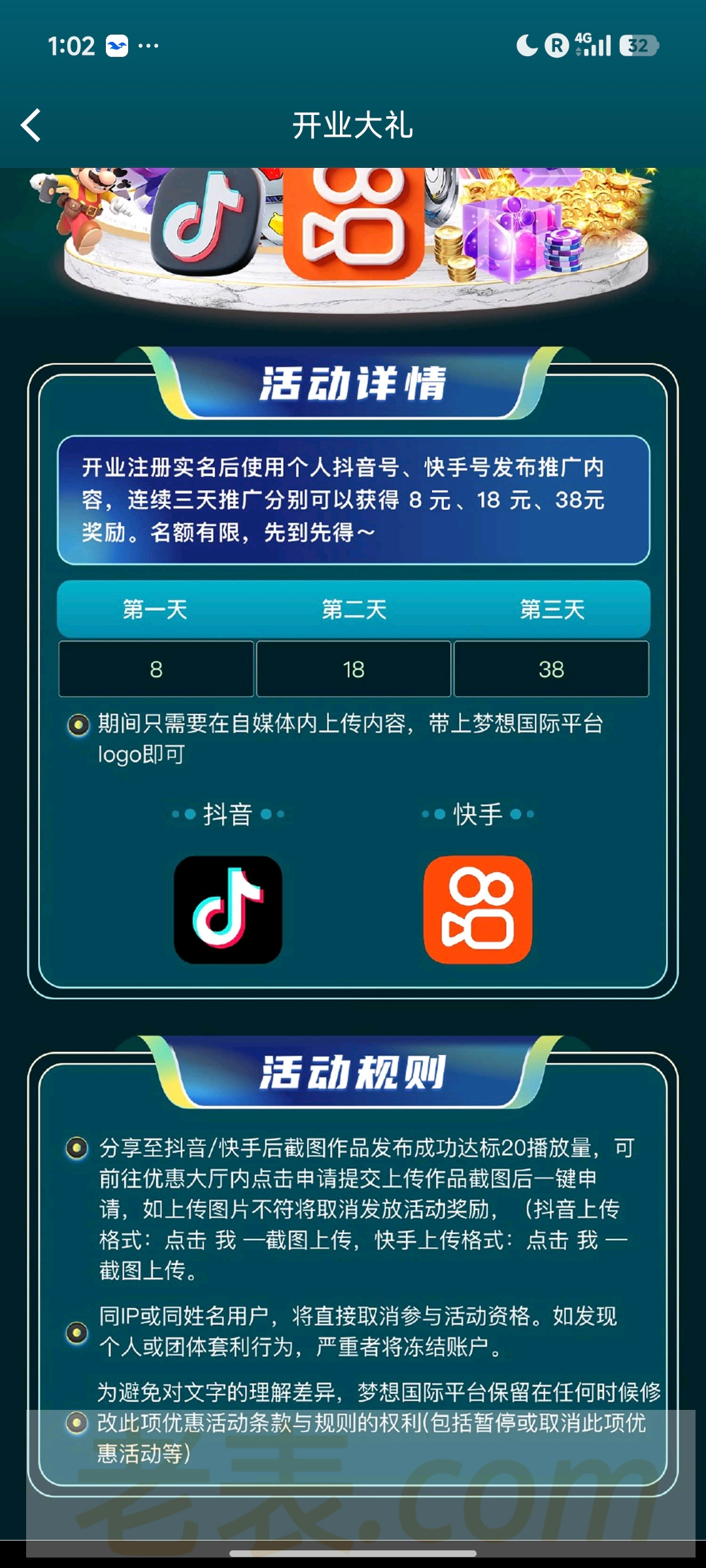 【梦想国际】注册送58